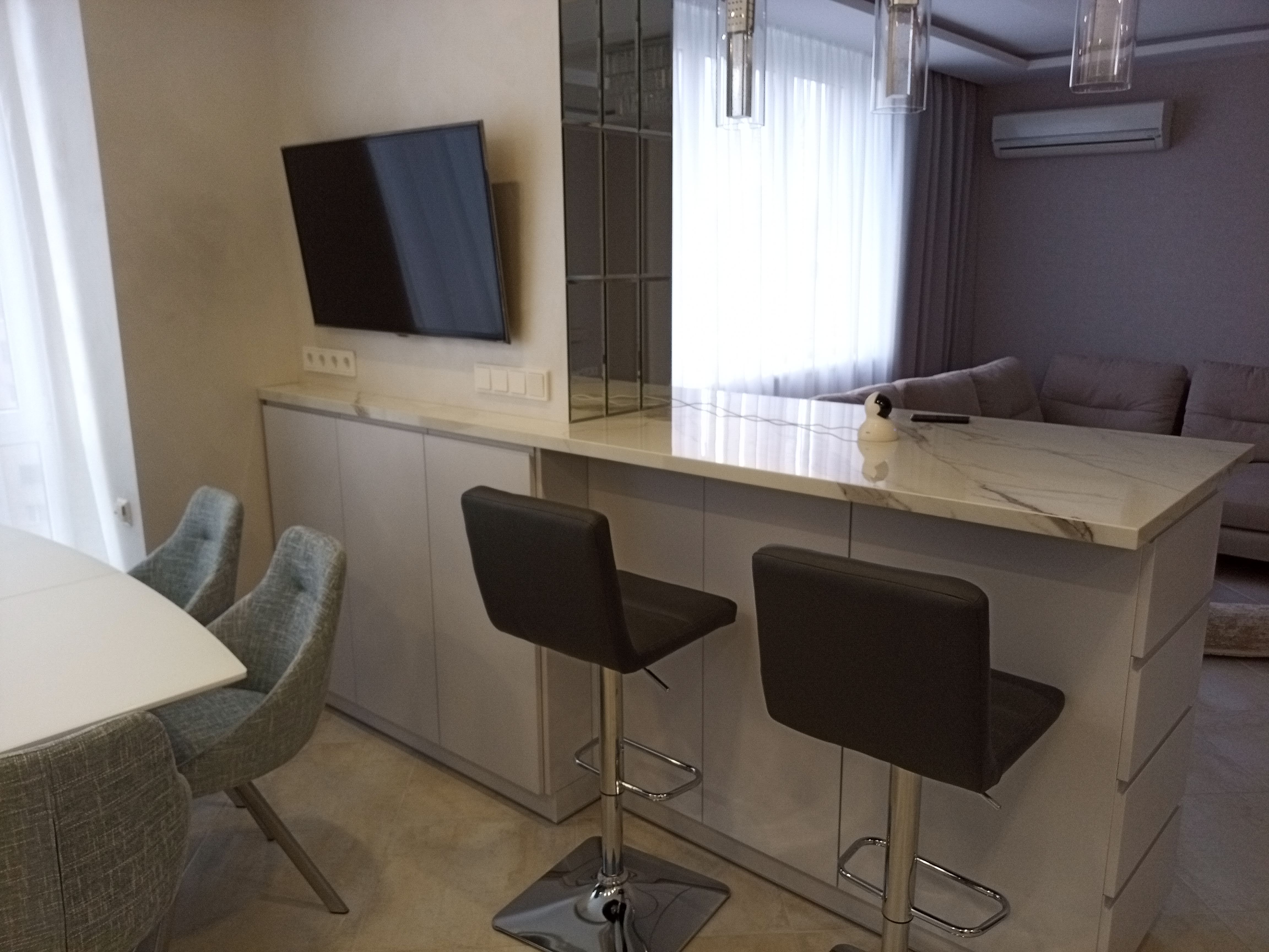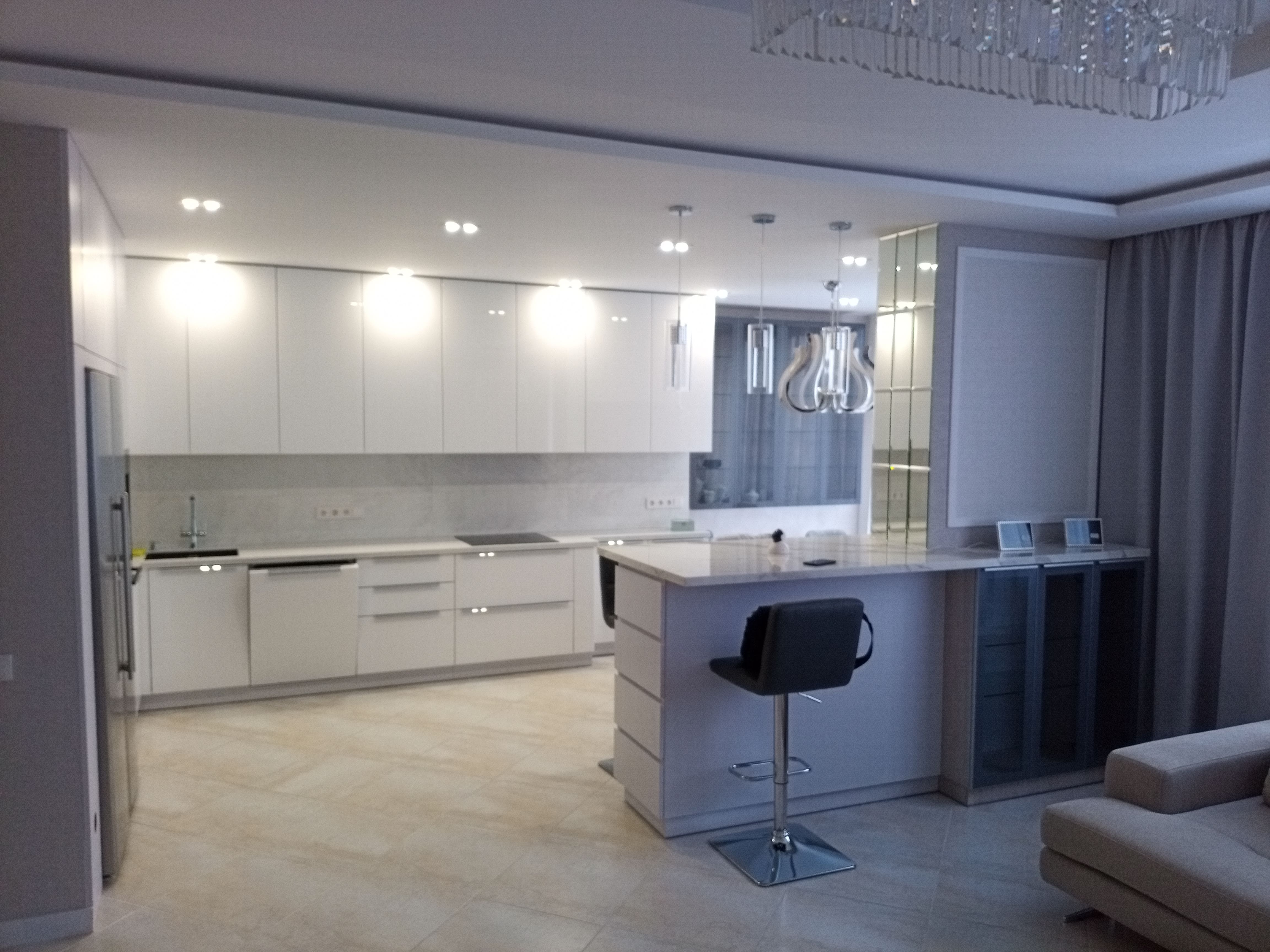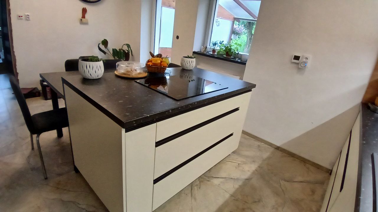 Přípravná a varná zóna • barové sezení • plynulý provoz v kuchyni