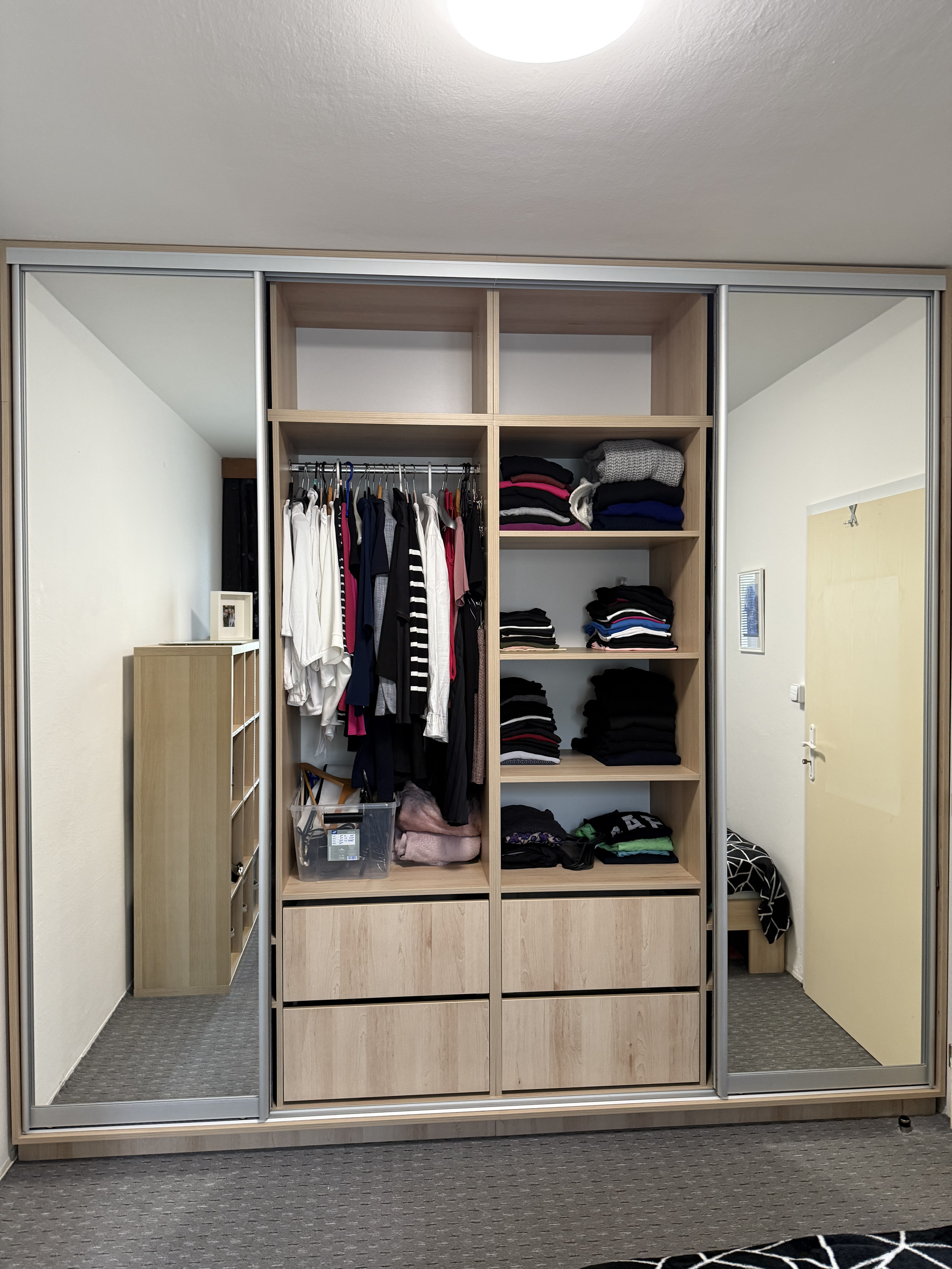 Plná výška • šatní tyče a zásuvky • přehledná organizace